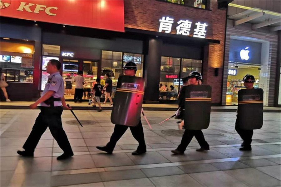 為忠實踐行“十六字總要求”,進一步凝聚警心、鼓舞士氣,激發(fā)斗志、砥礪擔當,堅決打贏新中國成立70周年大慶安保維穩(wěn)這場硬仗,“踐行新使命、忠誠保大慶”實踐活動實施, 2019年9月7日由樊城區(qū)漢江派出所民警帶隊,戎安保安公司隊員分為兩班輪流在中心城區(qū)人員密集場所開展義務巡邏。